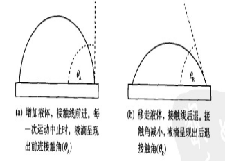 在化学里滚动角应该定义为前进接触角(简称前进角)与后退接触角(简称后退角)